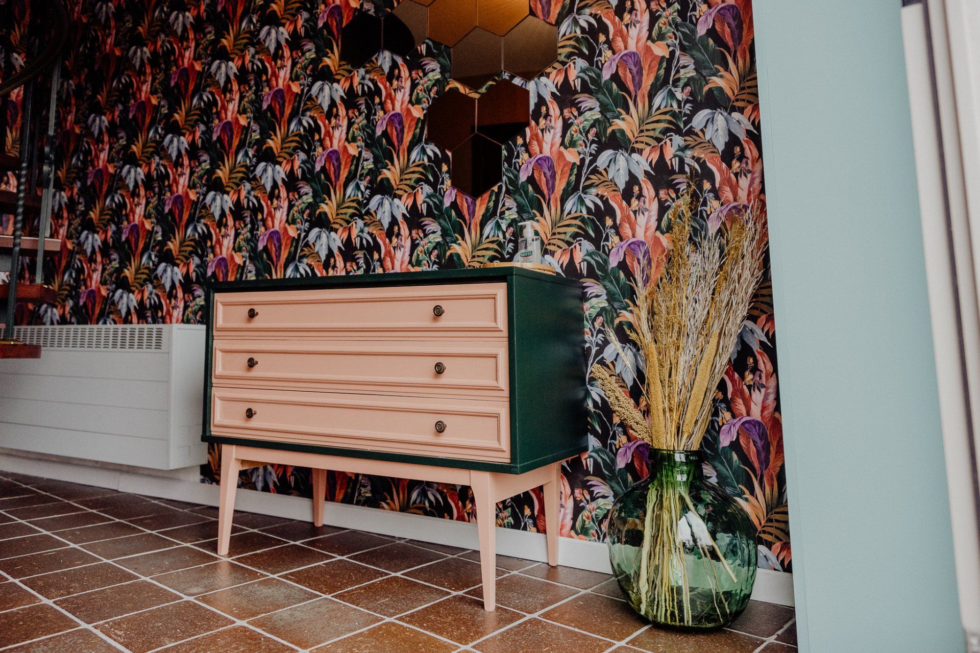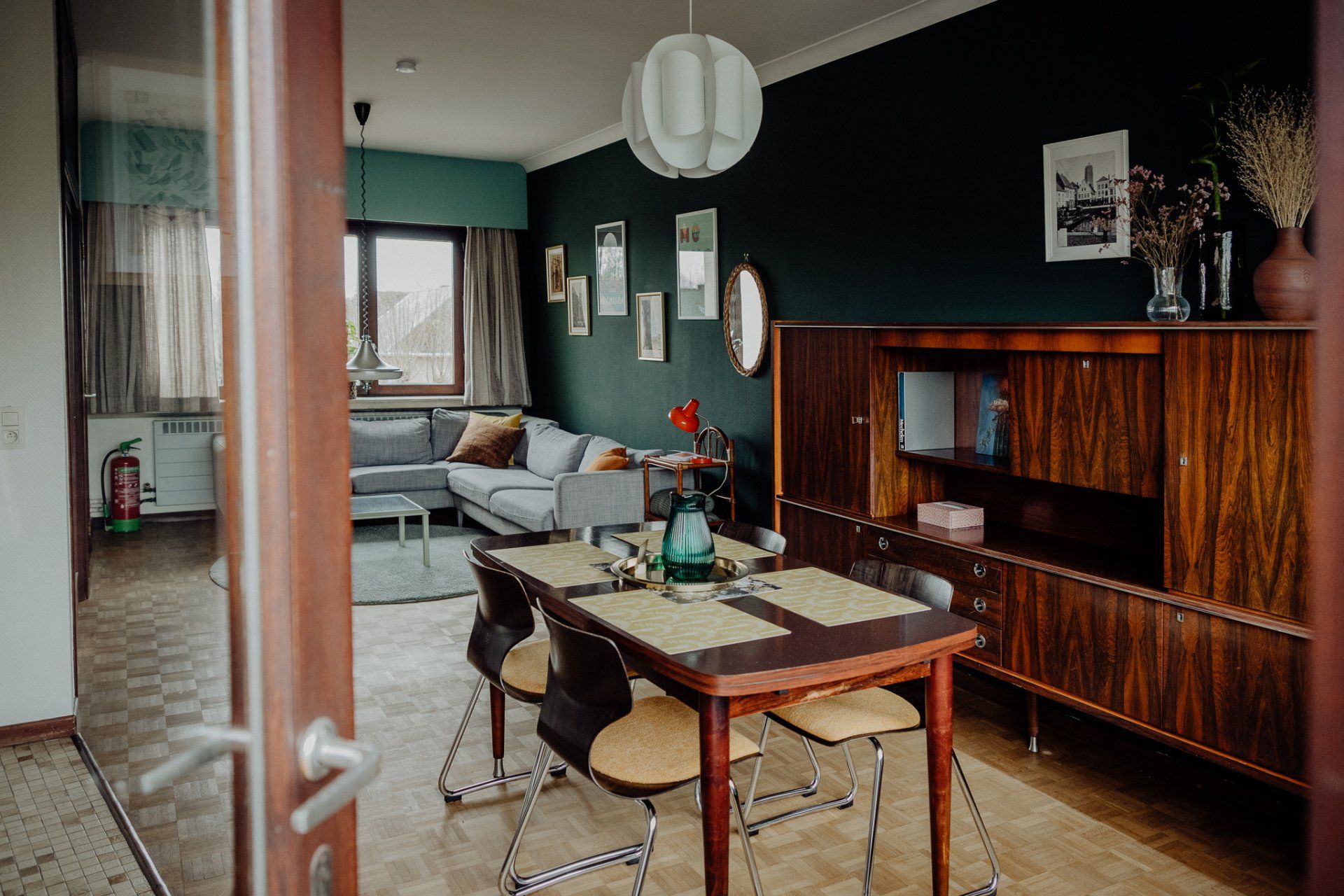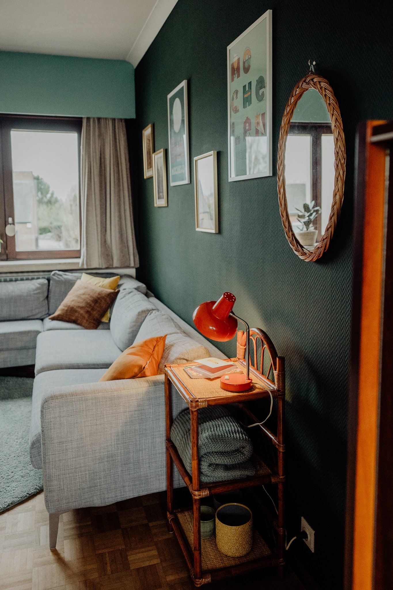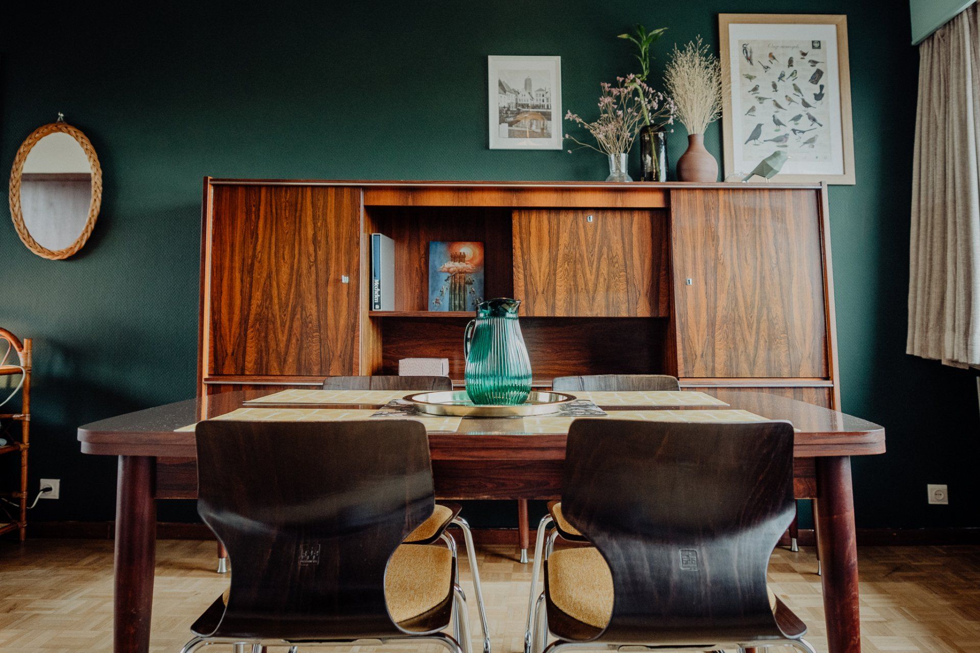 Het interieur is seventies geïnspireerd, met retro en vintage accenten. Duurzaamheid staat voorop; meubelen en andere spullen zijn zo veel mogelijk tweedehands. Als trotse, gediplomeerde Mechelen-ambassadeur heb ik ook mijn liefde voor de stad in het interieur doorgetrokken met oude prenten en boeken.